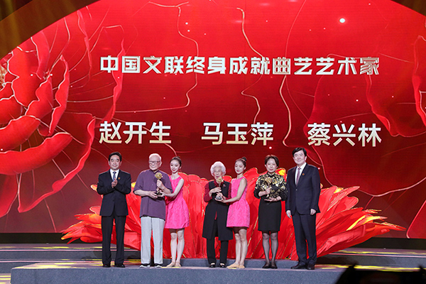同时,为褒扬在曲艺艺术方面取得卓越成就、为曲艺事业作出杰出贡献的曲艺家,经中国文联研究决定,特授予苏州评弹表演艺术家赵开生、河南坠子表演艺术家马玉萍、二人转表演艺术家蔡兴林3位同志“中国文联终身成就曲艺艺术家”荣誉称号。