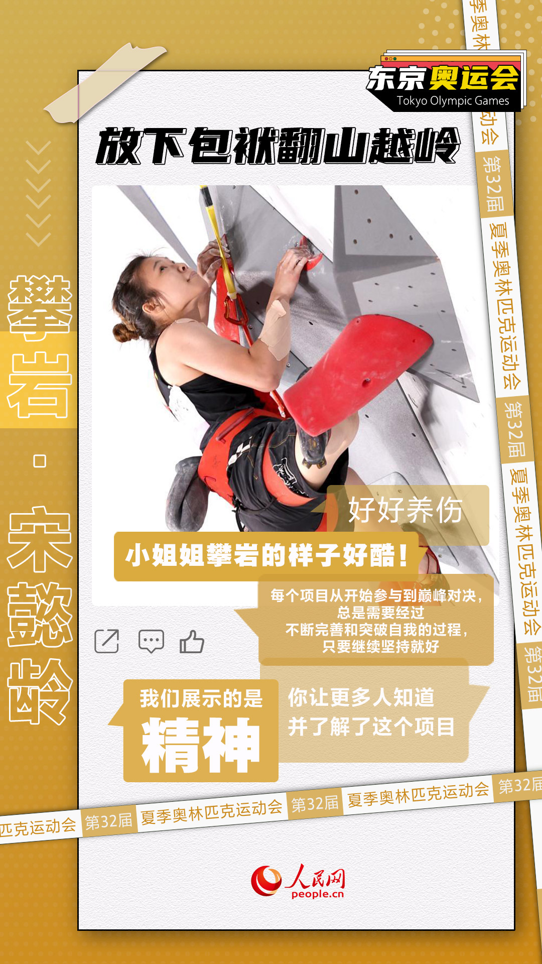 攀岩女子项目8月4日迎来奥运首秀,作为现世界排名第五的速度赛选手宋懿龄,在速度赛中发挥稳定,但因触发肩伤导致后面的比赛成绩不佳,排名第12无缘决赛。赛后,宋懿龄表示,参加奥运会她很紧张,但自己练的项目能在奥运平台上展示还是令自己很高兴。“三年后我会更厉害!”她说。