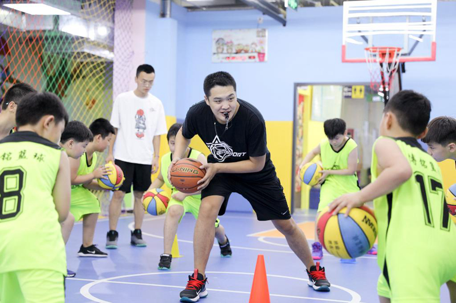 2020年7月26日,河北省衡水市一家少年篮球培训机构举办暑期“篮球营”,吸引众多当地中小学生前来学习,在强身健体中充实假期生活。新华社记者 朱旭东 摄