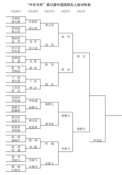 第33届中国围棋名人战挑战者决定战对阵表。主办方供图